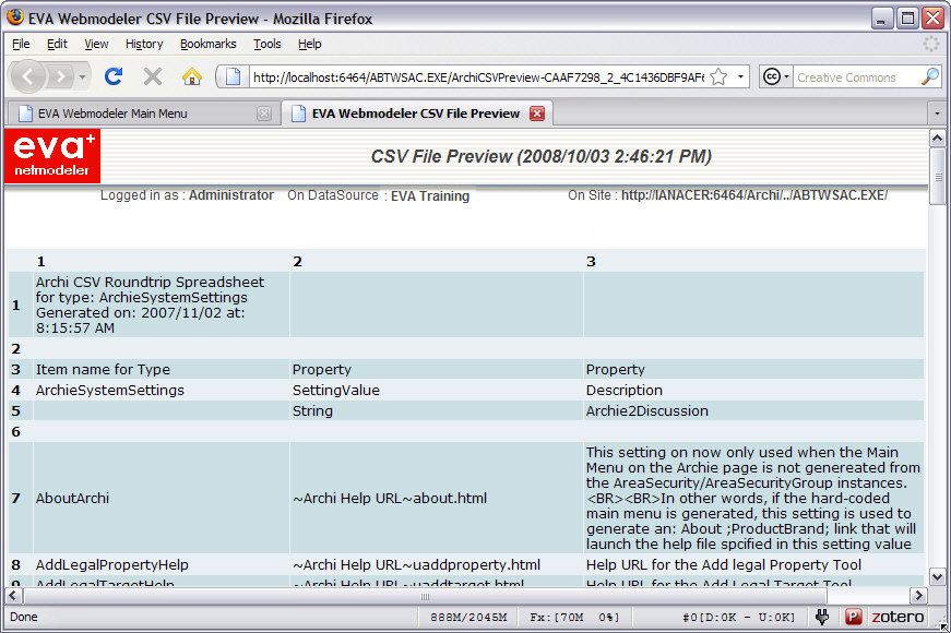 - Start the import utility by clicking on the Import Utility item on the System menu. The system menu can be accessed by clicking on the product logo on the top left of most EVA Netmodeler browser windows.